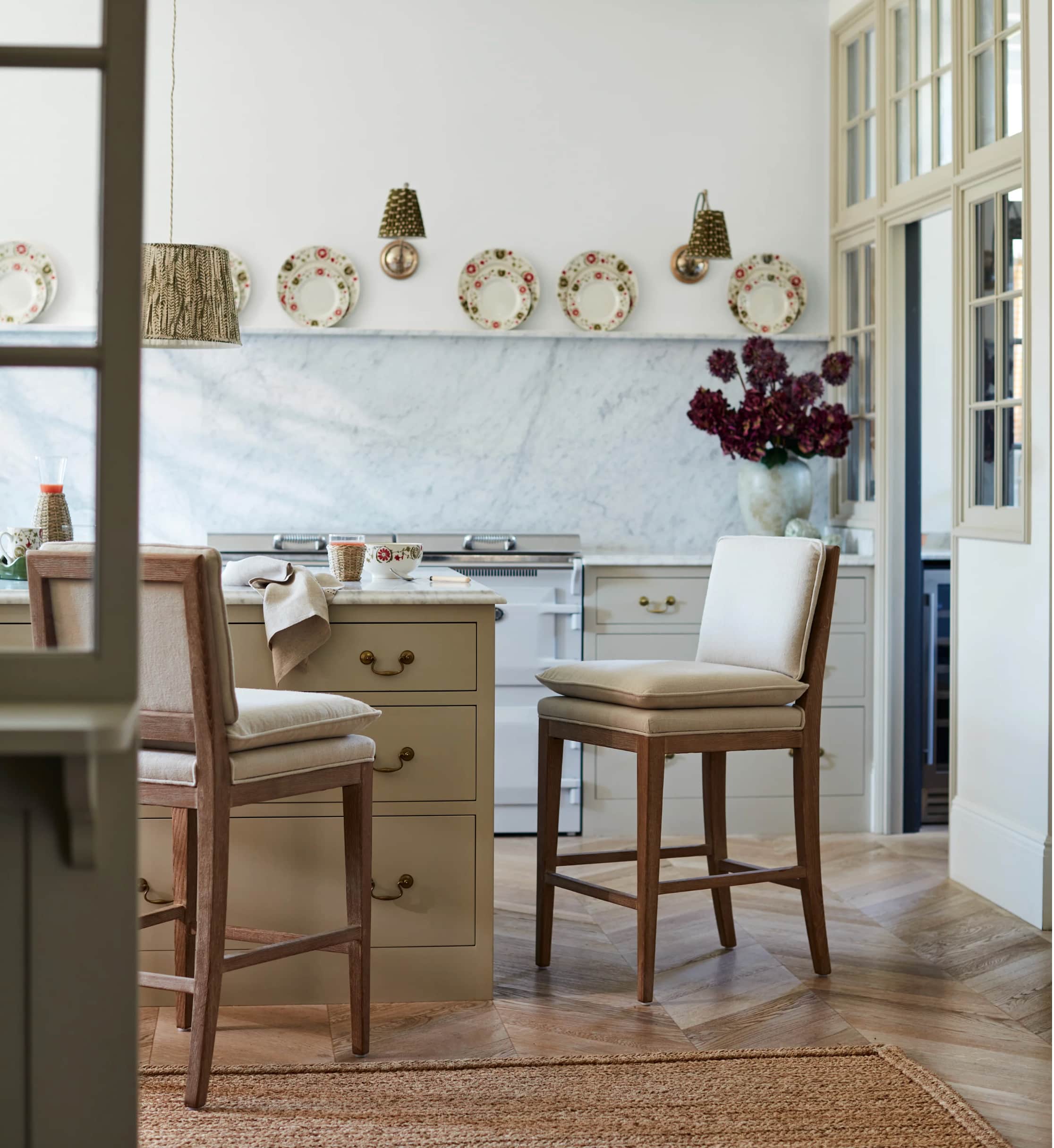 If you’re drawn to dark cabinetry and the slim Shaker style — start with one bold element (e.g., the island cabinetry in deep green) and keep the rest of the scheme lighter or neutral to balance. Treat the dark units as a piece of furniture rather than simply “kitchen cupboards”. Use rich hardware and warm materials to give the space character and depth.